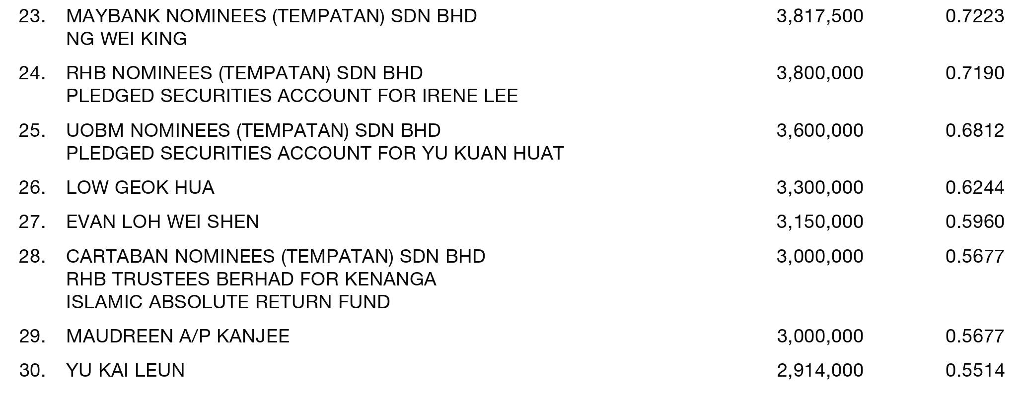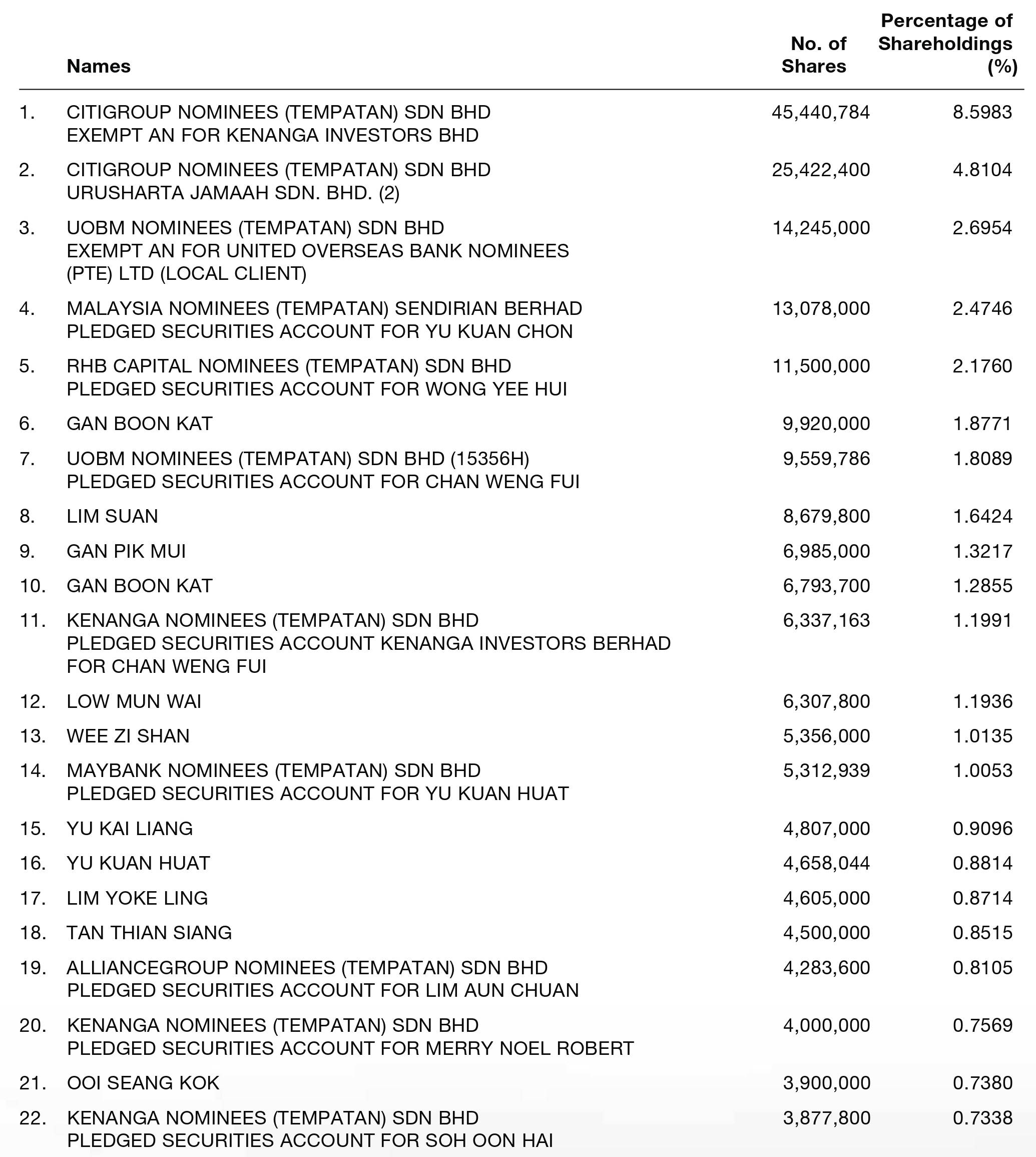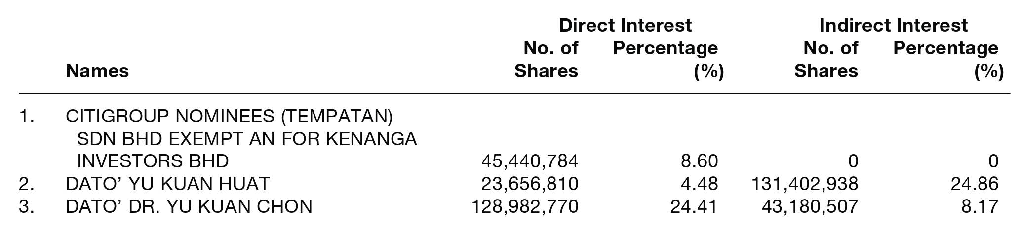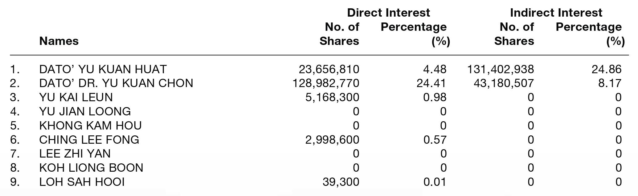 By virtue of their interests in the ordinary shares of the Company, Dato' Dr. Yu Kuan Chon and Dato' Yu Kuan Huat, are deemed to be interested in the ordinary shares of subsidiaries to the extent that the Company has an interest.